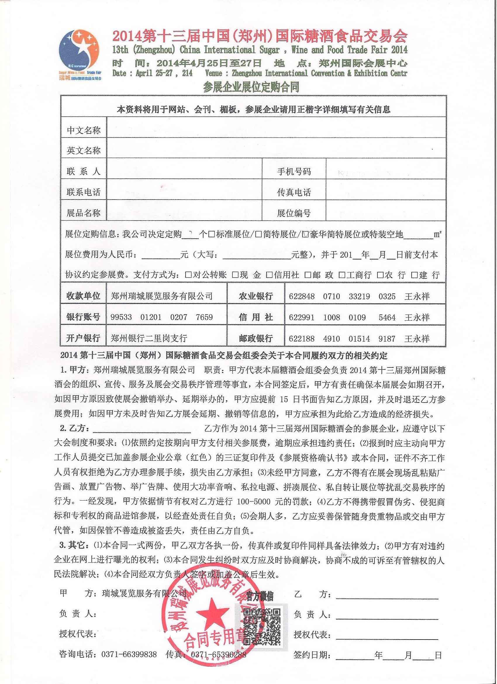 2014中国(郑州)国际糖酒会 展位合同.doc